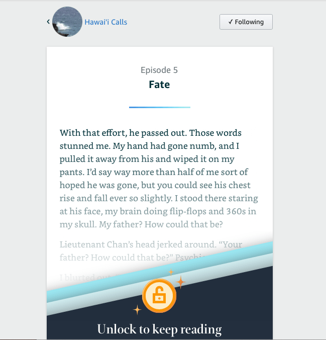 “Fate,” Episode 5 of my 5th Lt. David Chan Hawai’i-based mystery series, is now available on the Kindle Vella platform.