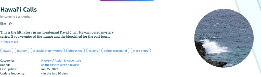 “Clear as Mud,” Episode 9 of my 5th Lt. David Chan Hawai’i-based mystery series, is now available on the Kindle Vella platform.