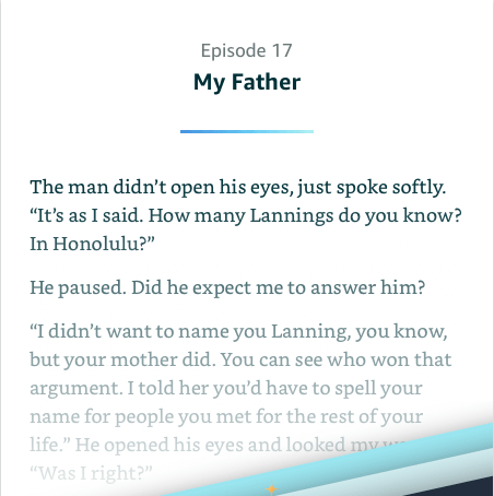 “My Father,” Episode 17 of my 5th Lt. David Chan Hawai’i-based mystery, is now available on the Amazon Vella platform.
